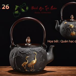 Ấm Gang Tetsubin 1200ml – Quần Hạc Diên Niên Mạ Vàng 24k