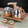 Bộ bàn trà điện thông minh gỗ hương, bếp đun tự động inox, cốc chén tử sa tây thi họa tiết HC – 03